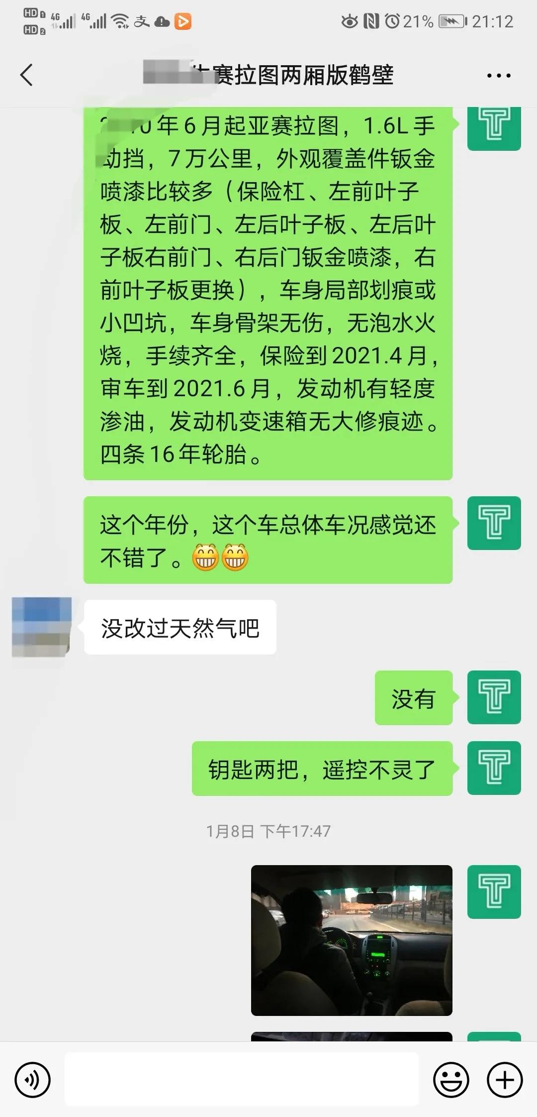 见到车后,胡大大首先查验了下这台车的手续。手续齐全,车的保险到2021.4月,审车到2021.6月,有两把钥匙,但是钥匙的遥控不太灵了。